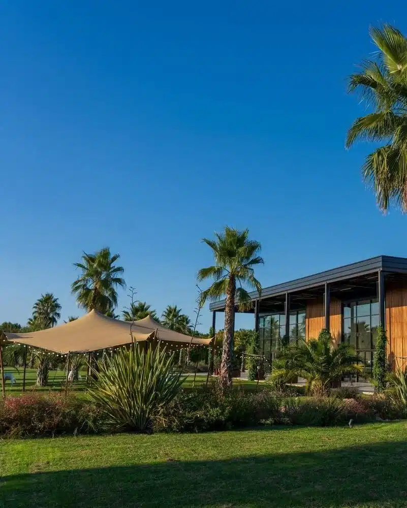 L’extérieur paysagé de 1,8 hectares se compose de plus de 50 palmiers et d’une centaine d’aloès.