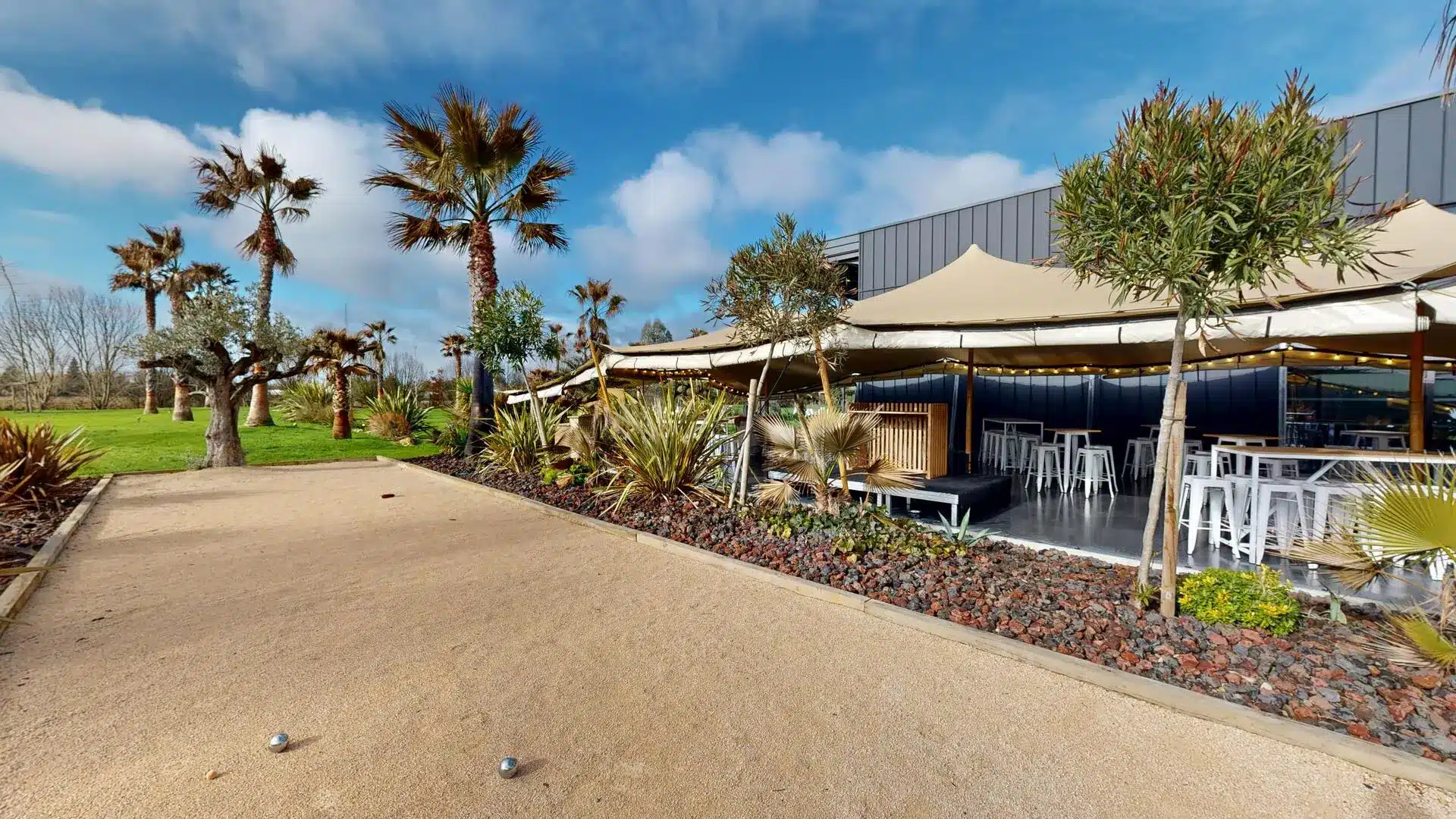 Notre vaste parc arboré favorise la détente et les échanges, agrémenté d’un espace pétanque idéal pour vos team building. Deux élégantes tentes Stretch viennent sublimer vos cocktails en extérieur, dans une atmosphère raffinée et chaleureuse.